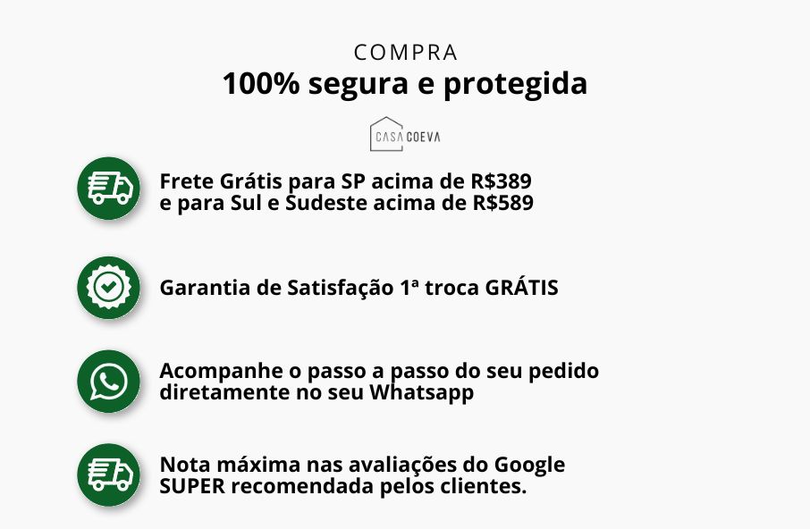 A cor do produto pode ter leve variação de acordo com as configurações do seu celular ou monitor.