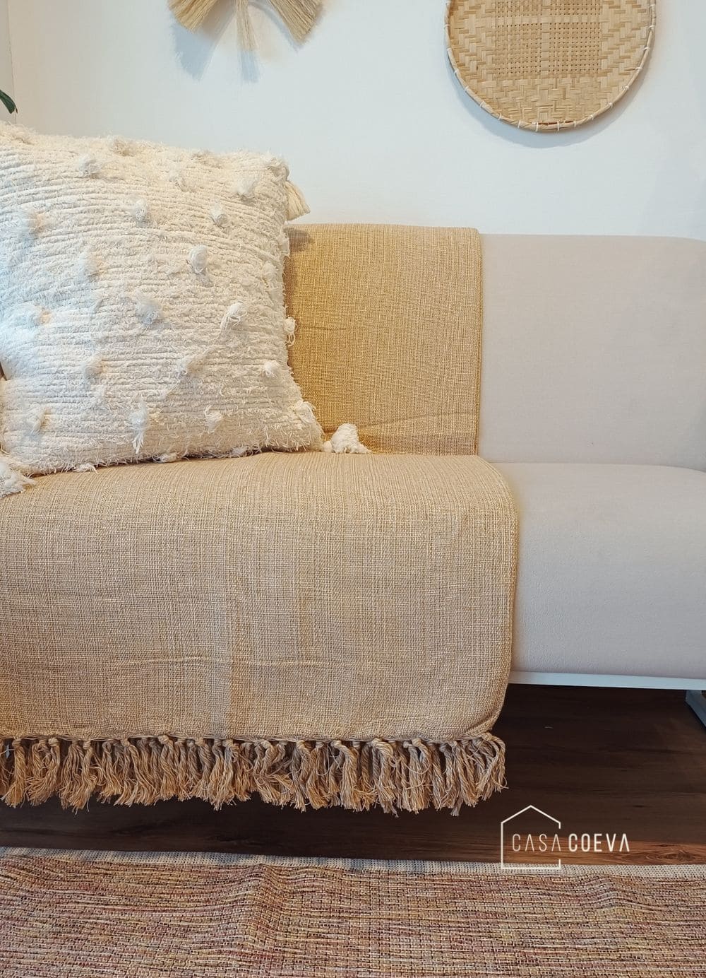 A Manta Artesanal Mel combina a sofisticação do tom Mel com a suavidade do cru, criando uma peça atemporal e versátil. O tecido encorpado e a trama fechada garantem caimento impecável, enquanto a medida generosa (220 × 300 cm) permite cobrir sofás amplos, camas e funcionar como peseira decorativa.