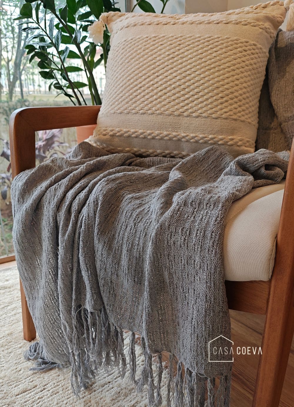 Manta de Sofá Artesanal Bruma – Algodão Cinza
