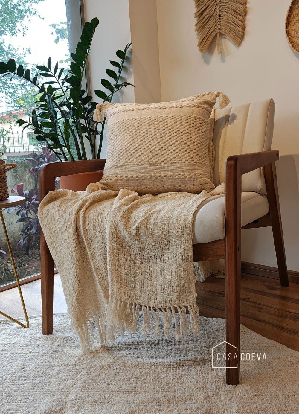 Manta de Sofá Artesanal Bruma – Algodão Cru