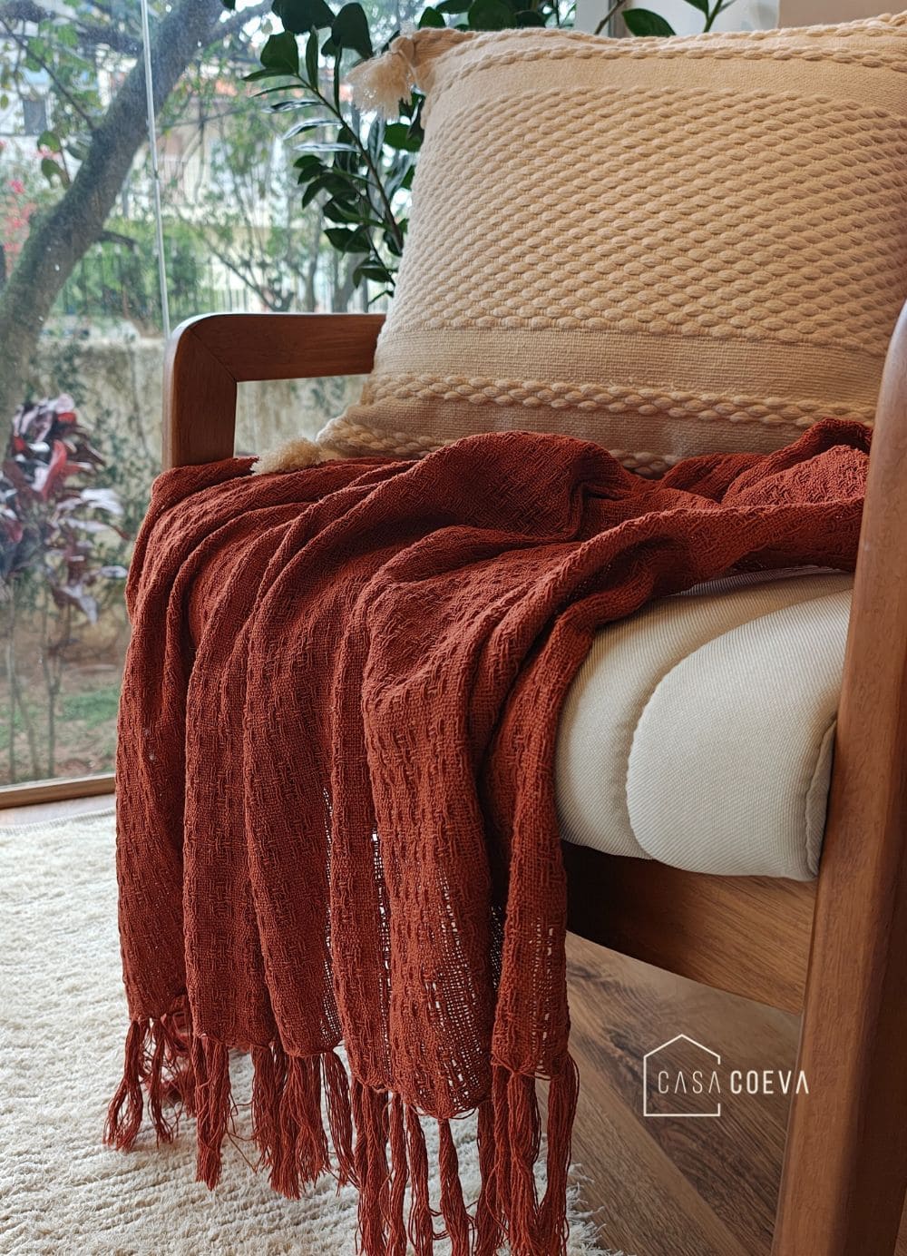 Manta de Sofá Artesanal Bruma – Algodão Terracota