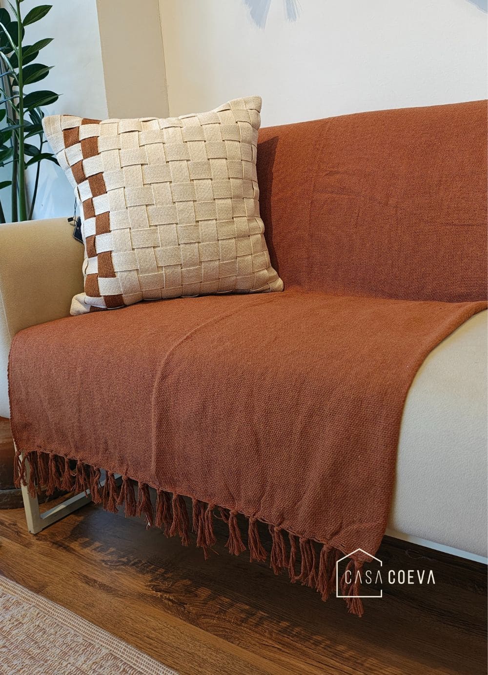 Manta Decorativa de Sofá Algodão Cobre Natural | Casa Coeva
