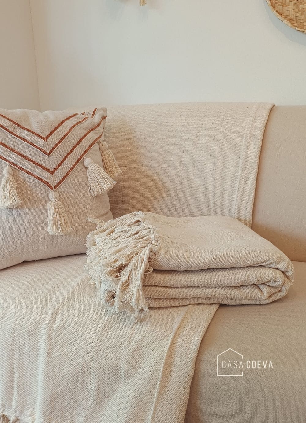 A Manta Artesanal em Algodão Cru da Casa Coeva é a escolha perfeita para quem valoriza beleza natural, conforto e autenticidade em cada detalhe. Feita em tear manual com fios de algodão 100% puro, esta peça combina suavidade ao toque com um acabamento impecável, ressaltado por franjas generosas que evocam o charme do feito à mão. O tom cru, neutro e sofisticado, traz uma estética leve e versátil, ideal para compor ambientes que pedem aconchego e elegância sem esforço.