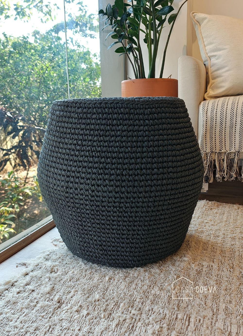O Puff Artesanal de Corda Náutica Cinza Grafite da Casa Coeva combina o design contemporâneo ao trabalho artesanal de alto padrão. Feito à mão com trançado em corda náutica resistente, é uma peça que une textura, conforto e elegância em perfeita harmonia. Ideal para compor salas de estar, quartos ou varandas cobertas, pode ser usado como assento extra, apoio para os pés ou mesa lateral decorativa.
