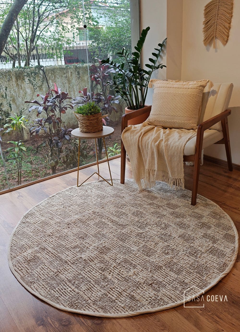 Traga calor e personalidade ao seu ambiente com uma peça que une o charme artesanal ao design boho contemporâneo. O Tapete Artesanal Redondo Boho Peludo Xadrez Caramelo Cru da Casa Coeva é mais do que um elemento de decoração: é um convite ao conforto, à autenticidade e à beleza natural.