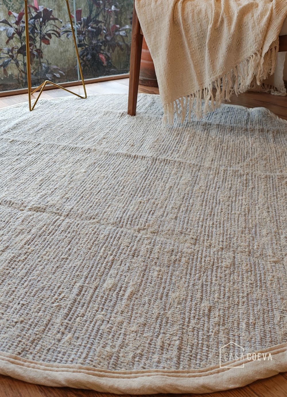 Confeccionado à mão em tear artesanal com 100% algodão natural, esse tapete se destaca pela textura peluda em relevo, que oferece uma sensação macia e agradável sob os pés. O tom cinza cru suave imprime calor ao espaço e harmoniza com diferentes estilos de decoração do rústico elegante ao minimalista contemporâneo, enquanto o formato redondo adiciona um toque boho que harmoniza com qualquer espaço. Com design dupla face, ele oferece a combinação de conforto e delicadza, permitindo versatilidade na decoração.